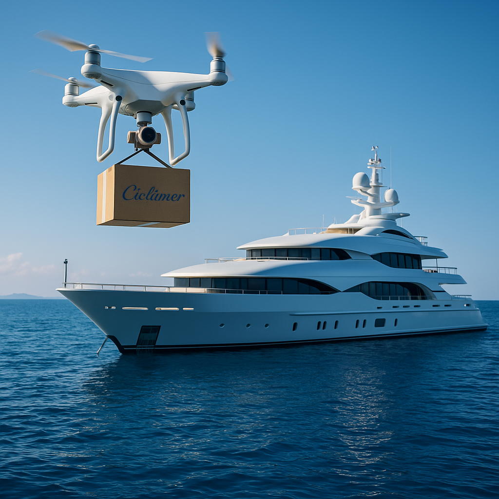 Built atop SkyGlint’s resilient framework, Cielâmer delivers curated packages to anchored yachts, luxury retreats, and remote cliffside estates.